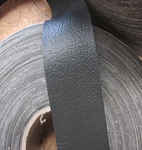 Dark Charcoal pvc binding, 0.8mm thick x 32mm wide. Leather grain embossed pvc binding. 20 mts per coil.; We are also able to make up the binding into piping. Please call us to discuss.